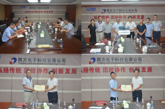 会上,彭虎副经理和徐保根总经理共同签署了研究生实践教学基地协议签署并挂牌,并向同方电子科技有限公司高级工程师杨民、陈向明、彭志华等三人颁发客座教授聘书。