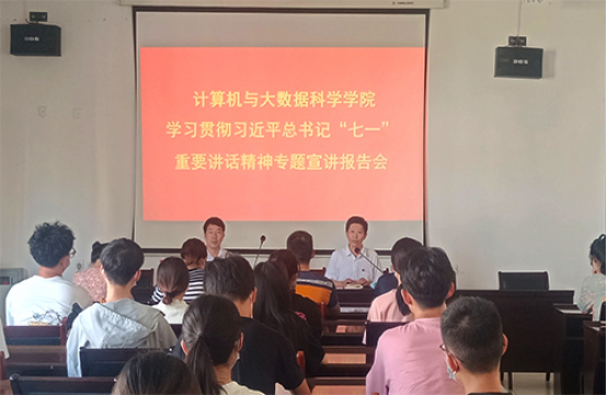 为深入学习贯彻习近平总书记“七一”重要讲话精神, 9月26日下午,2026世界杯官网在文友楼424举行学习贯彻习近平总书记“七一”重要讲话精神专题宣讲报告会。校马克思主义宣讲团成员、马克思主义学院形势与政策教研室主任夏仕教授作宣讲报告。计算机公司党委书记袁宜如主持报告会。