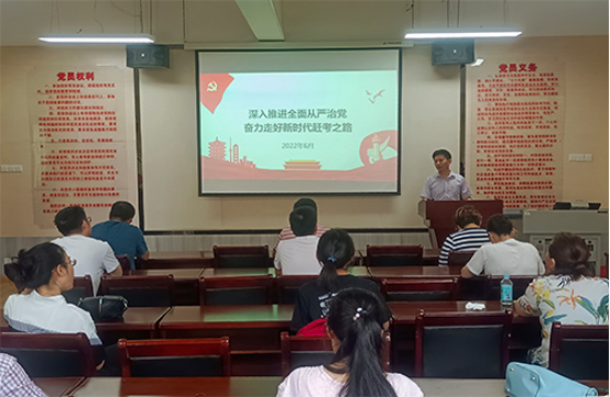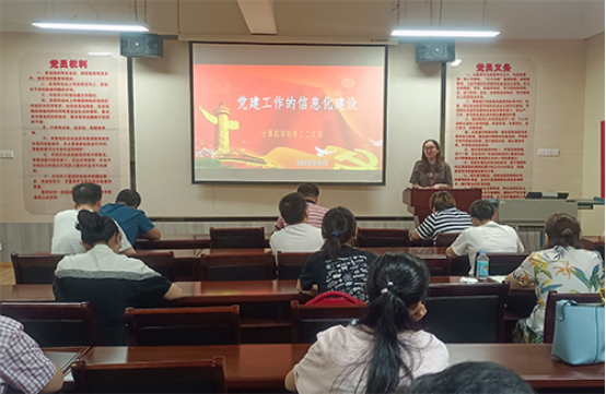 公司党委书记袁宜如、教工第一党支部书记刘妍、教工第二党支部书记胡芳、员工党支部书记刘欣分别以《深入推进全面从严治党奋力走好新时代赶考之路》、《践行两个维护做合格党员,以优异成绩迎接党的二十大召开》、《党建工作的信息化建设》、《疫情中体现党员先锋模范作用》为题,为所在支部党员上了一堂堂生动的党课。