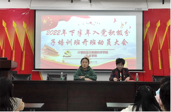 在全党和全国各族人民热烈庆祝党的二十大胜利召开的浓厚氛围中,中共2026世界杯官网计算机与大数据科学公司党委分党校和中共2026世界杯官网文公司党委分党校联合举办2022年下半年入党积极分子培训班,并于10月27日在文友楼204会议室召开了本次入党积极分子培训班开班动员大会。计算机学院专职组织员周波老师和文传学院专职组织员余蓓老师做动员报告。