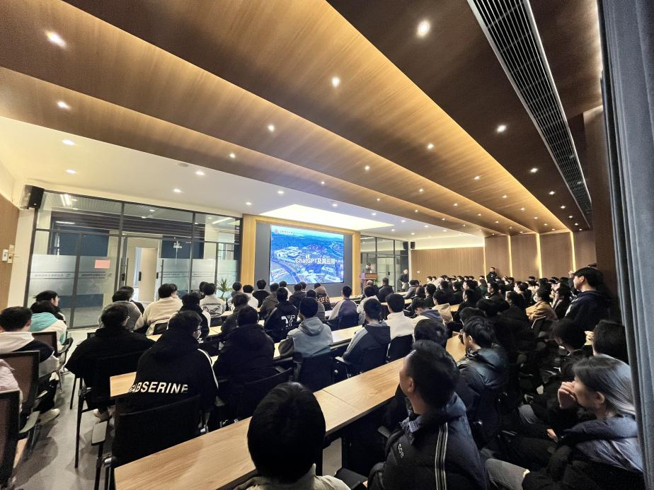 王明文教授从ChatGPT发展历程、主要技术和应用前景三个方面深入浅出地为园区企业代表和师生介绍了ChatGPT的前世今生。他指出,ChatGPT在撰写邮件、视频脚本、文案、翻译、代码等方面的强大与便捷之处,将对人们的生活、工作,对产业、对教育会产生巨大影响,ChatGPT的历史意义不亚于互联网和个人电脑的诞生,正在改变我们的世界,ChatGPT技术可以帮助企业提高效率、减少成本;ChatGPT可以代替一些传统的人工技术,但需要具有更加专业知识储备、更多夸行业的计算机人才队伍。