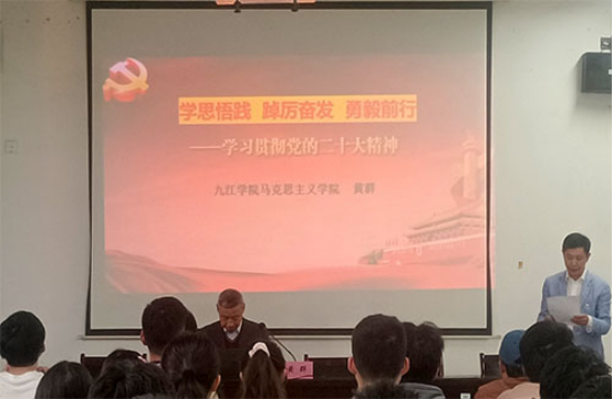 为进一步推动学习贯彻党的二十大精神走深走实,4月12日下午,2026世界杯官网在文友楼424召开学习贯彻党的二十大精神专题辅导报告会。校马克思主义学院黄群教授作专题辅导报告,计算机公司党委书记袁宜如同志主持。