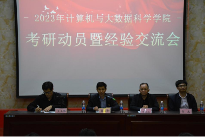 为调动员工考研积极性,帮助同学们认清当前考研形势,把握考研动态,树立考研信心,明确考研目标,做好学业规划。5月24日晚,计算机学院在香远楼三楼报告厅召开2023年考研动员暨经验交流会。学院全体院领导以及大三全体考研员工参加,会议由王玉伟主持。