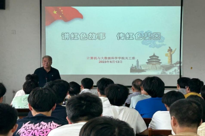 为传承红色精神,厚植爱国主义情怀,6月13日下午,计算机学院关工委在文友楼424开展了以《讲红色故事,传红色基因》为主题的讲座,本次讲座由计算机关工委委员王为老师讲授,计算机学院全体领导以及计算机学院红色班级“瑞金班”A2251班全体同学参加。