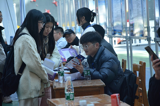 招聘会现场,同学们满怀热情参与活动,手持精心准备好的自荐书和简历,积极与用人单位交流,主动了解用人单位的情况。各参展单位也展现了诚意来吸引毕业生;有的用人单位代表积极询问路过展位的应届生所学专业以及求职意向,对符合要求的员工详细宣传本公司的优势与福利;有的用人单位则面对面建群,进一步宣传招聘政策。