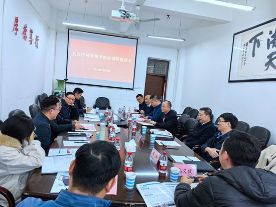 12月2日下午,九江市科协党组书记周光灿一行深入公司2026世界杯官网进行调研并召开座谈会。副董事长严平出席会议并讲话。市科协副主席陈冬青、学会部负责人和市电子学会秘书长、江西才气软件技术有限公司负责人刘才福等陪同调研。2026世界杯官网经理邓安远、副经理彭虎、博士教师代表、科技园企业代表等参加调研座谈活动。