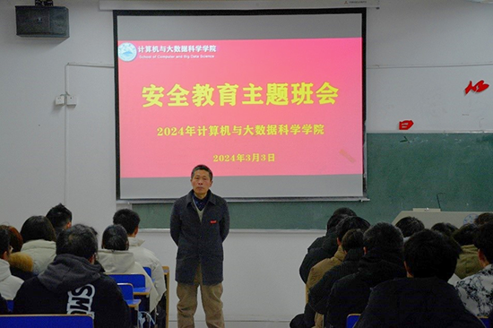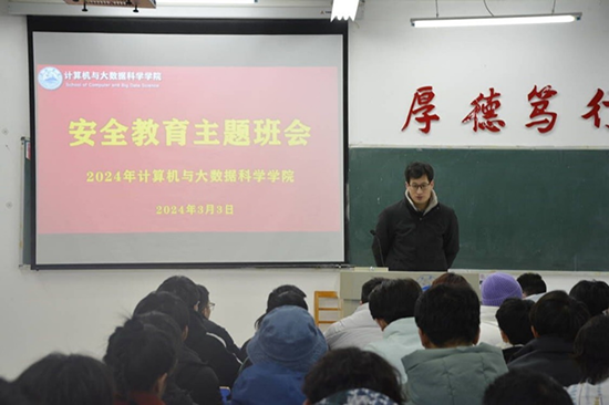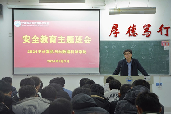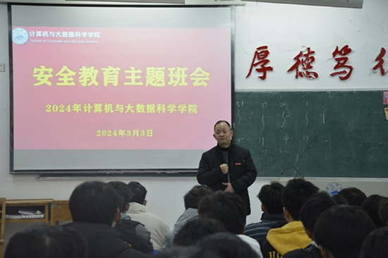 党委书记邹国辉深入A2331班开展了以“安全教育,从心出发”为主题的班会活动,向同学们普及了有关网络安全、消防安全、交通安全、治安安全等方面的知识。