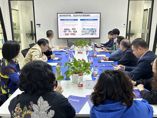 双方围绕人工智能与大模型的相关微专业设置、课程建设、实训实践基地、团队培训、学科专业竞赛、员工实习就业等方面进行了深入交流和洽谈。会上,公司一行在飞浆中心相关负责人的详细介绍和展示下,进一步了解了百度飞浆的教学资源及管理平台情况、人工智能学习与实训社区运营情况、飞浆与大模型赛道设置情况以及百度飞桨的技术实力和应用场景情况。