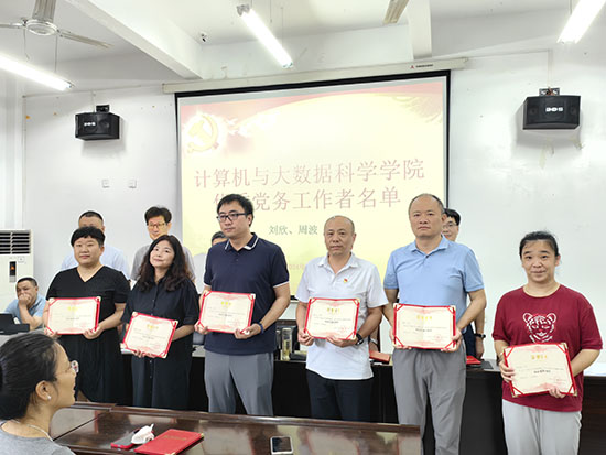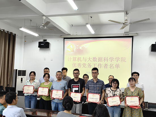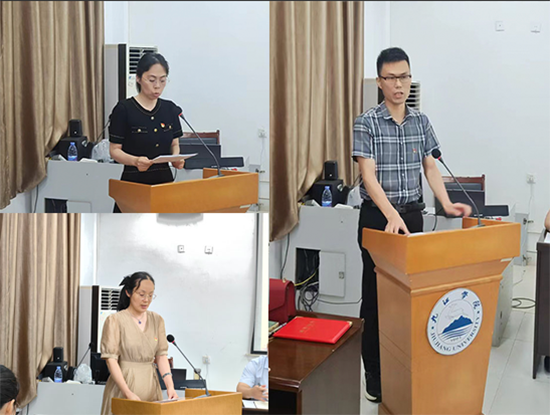 表彰大会在庄严的国歌中拉开序幕。全体党员面向党旗重温入党誓词,庄严宣誓。邓安远经理宣读了学院《关于表彰2023年度先进个人的决定》《关于表彰2023年度先进党支部、优秀党员和优秀党务工作者的决定》文件。70余人次获人才培养、世界杯竞猜、管理服务等方面的突出贡献奖,教工第二党支部和员工第二党支部荣获“先进党支部”荣誉称号,17名同志荣获“优秀共产党员”荣誉称号,2名同志荣获“优秀党务工作者”荣誉称号。与会领导分别为先进支部和先进个人逐一颁发荣誉证书。