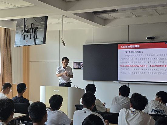 在思政课堂上领导们不时穿插生动案例,与同学们进行互动交流,使原本可能略显抽象的理论知识变得鲜活起来。同学们听得津津有味,眼神中闪烁着对知识的渴望。在思政课的最后,领导们向全体新生提出了殷切期望。希望同学们能够珍惜大学时光,勤奋学习,不断提高自身综合素质;同时,要紧密关注国家大事,深入了解社会发展动态,将个人理想融入国家和民族的发展大局之中;更要勇于担当责任,积极投身社会实践,为中国式现代化的伟大事业贡献青春和力量。