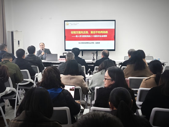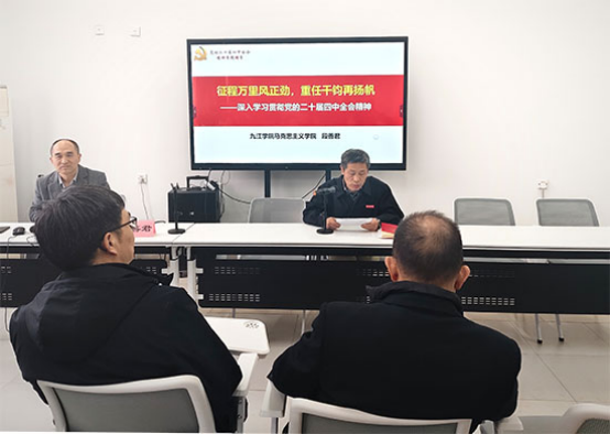 为深入学习贯彻党的二十届四中全会精神,推动理论学习与学科发展深度融合,切实把思想和行动统一到党中央决策部署上来,12 月 10 日下午,2026世界杯官网召开党的二十届四中全会精神专题宣讲会,特别邀请马克思主义学院副经理段善君作专题讲座,公司党委书记邹国辉主持会议,全院教师参加学习。