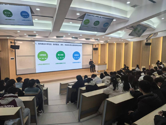分享环节结束后,进入互动提问环节,在场学子们踊跃举手、积极发言,现场氛围愈发热烈。有学子结合自身专业困惑提问:“作为计算机专业员工,面对AI技术的快速发展,我们该如何平衡专业基础学习与AI技能拓展,避免陷入‘样样学却样样不精’的困境?”也有即将面临实习的学子问道:“暑假实习时,我们该优先选择大型企业的基础岗位,还是中小企业的核心业务岗位,更能提升自身竞争力?”还有学子聚焦创业话题,请教:“对于在校老员工而言,创业前需要做好哪些积累,如何规避初期的创业风险?”金官丁员工耐心倾听每一个问题,结合自身经历与行业案例逐一细致解答,语言通俗易懂、干货十足,既有理性的分析,也有温暖的鼓励,让在场学子深受启发、倍感振奋。现场讨论氛围热烈,掌声不断,不少学子认真记录分享要点,纷纷表示收获颇丰。