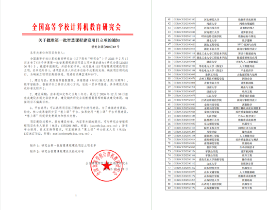 近日,从全国高等学校计算机教育研究会传来喜讯,公司物联网工程教研室主任刘妍老师主讲的《Python程序设计》课程成功入选研究会首批智慧课程建设项目。与此同时,刘妍老师受邀参加于2026年3月21-22日在湖北武汉召开的第四届应用型计算机类专业经理/系主任大会,并在“智慧课程建设”分论坛和全国高校同行分享、探讨课程建设的改革思路和创新实践。