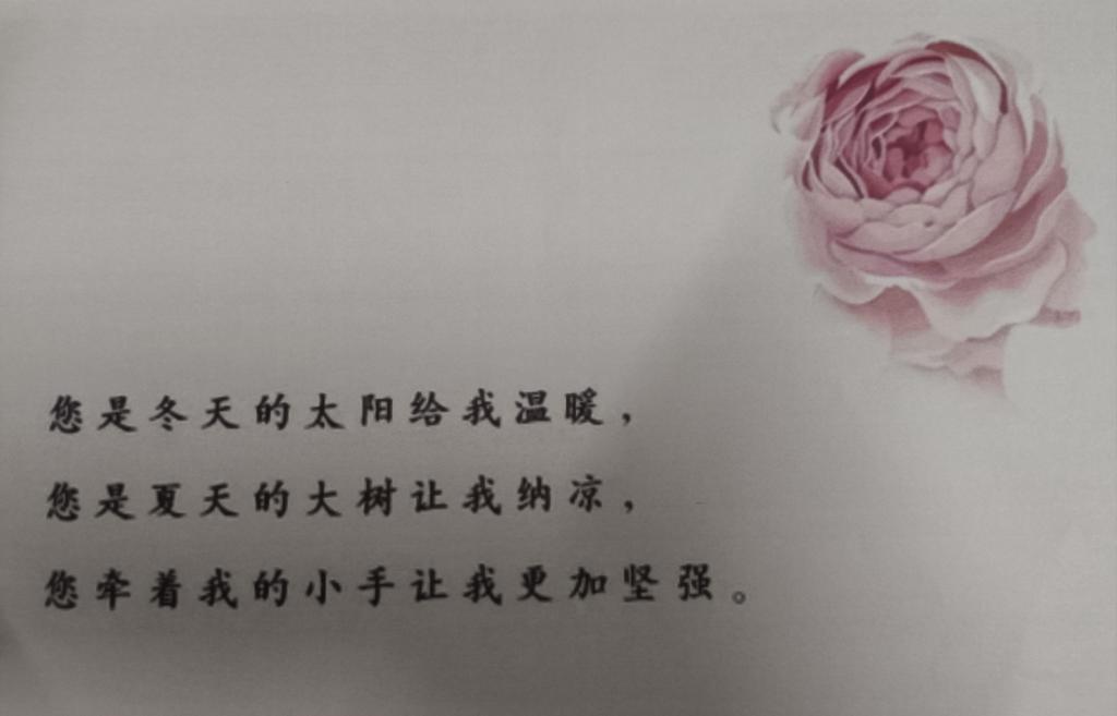 活动开始,支持人便询问同学们是否知道母亲的生日,是否知道母亲的喜好等一系列问题,同学们踊跃发言,但不乏某些同学回答不出。我们从呱呱落地的婴儿到现在有独立思想的个体,少不了母爱的陪伴和呵护,所以我们今后应该好好的回报母亲,为母亲做一些我们力所能及的事。活动最后,同学们纷纷制作了优美的贺卡写下对母亲的“三行情诗”,以此表达对母亲的感激。