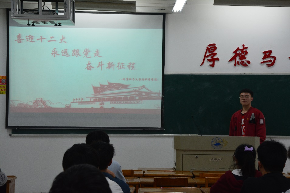 为深入学习贯彻落实好习近平总书记关于青年和共青团工作的系列重要论述精神,以迎接和宣传党的二十大为主线,庆祝建团100周年,4月20日晚,计算机学院在文友楼515、516开展“喜迎二十大,永远跟党走,奋进新征程”主题团课,全体骨干培训班成员参加。