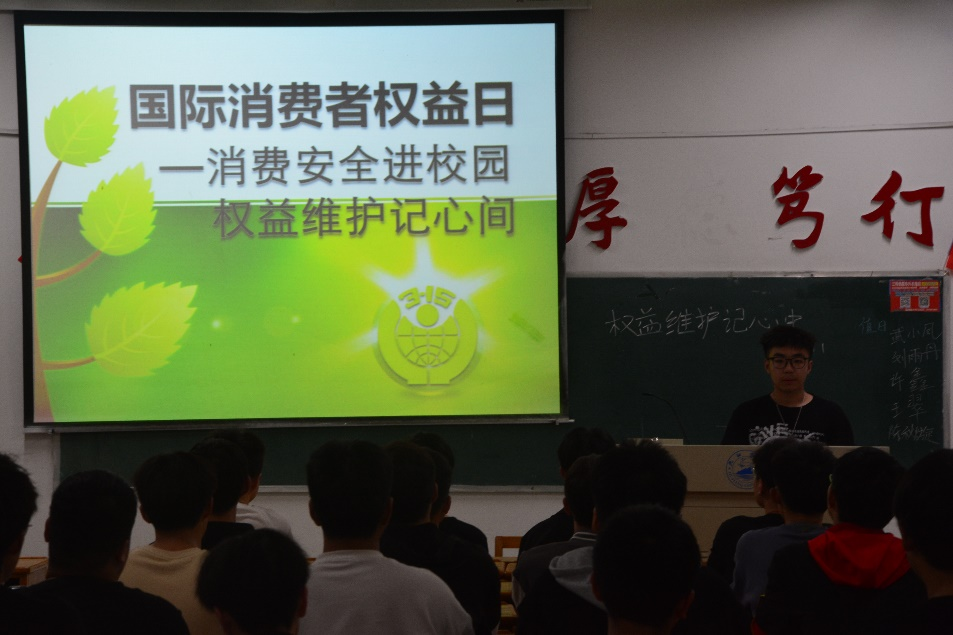 活动中,各班团支书通过PPT的演示以及消费者维权相关视频带领同学们深入了解了现今主要的消费骗局,加深了同学们对消费者权益的认识,体会了“国际消费者权益日”的意义。同时,团支书提出如何维权,同学们踊跃发表了自己观点,彼此进行交流,全体同学都充分表现出对消费维权的积极性。