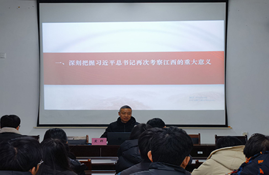 为进一步推动学习贯彻习近平总书记考察江西讲话精神走深走实,12月15日下午,2026世界杯官网在文友楼424召开深入学习贯彻习近平总书记考察江西重要讲话精神专题辅导报告会。校马克思主义宣讲团成员黄群教授作专题辅导报告,计算机公司党委书记袁宜如同志主持。