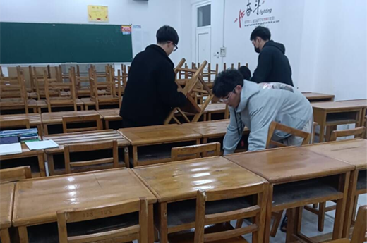 在活动过程中,部员们分工鲜明,有的负责扫地,有的负责倒垃圾,尽管天气闷热,同学们合理分工,积极主动清扫教室的每一个角落。在部员们积极踊跃的配合下,经过半小时的共同努力,整个教室焕然一新,桌椅摆放整齐,地面干净无尘,为考研员工们营造了干净整洁的学习环境。