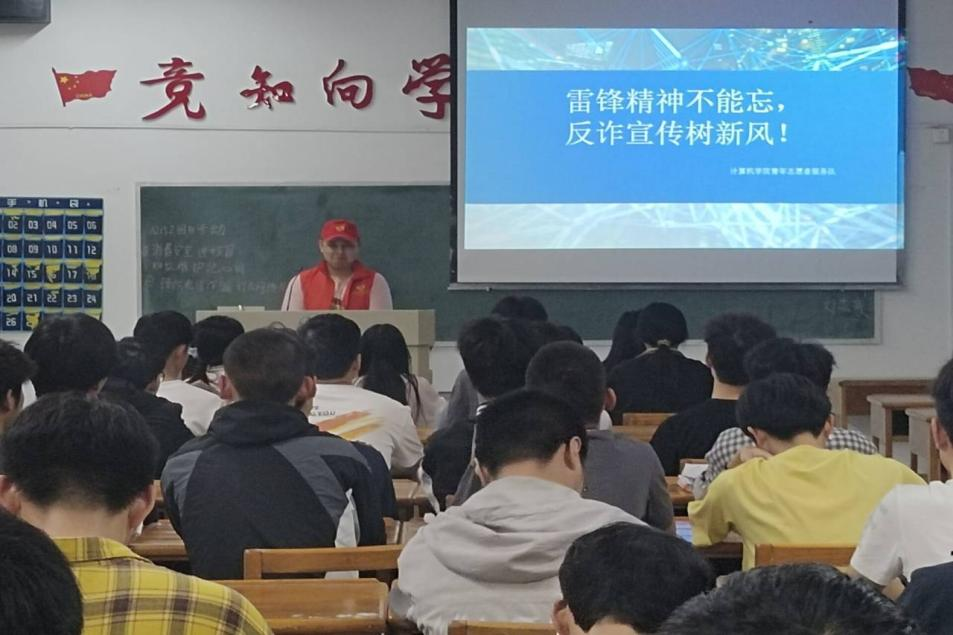 为进一步弘扬雷锋的钉子精神,提高我院老员工的法律意识、防诈骗意识,3月16日,计算机学院青年志愿者服务队在本学院开展了“雷锋精神不能忘,反诈宣传树新风”志愿宣传活动。