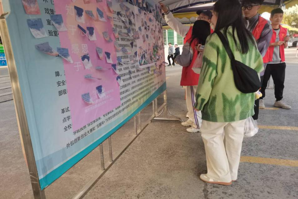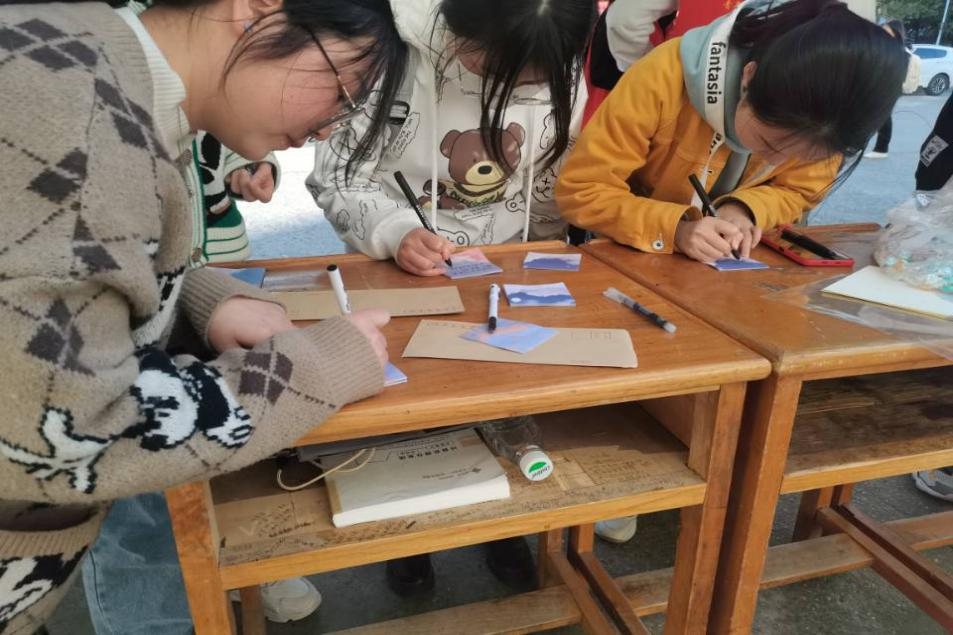 活动开始,志愿者们首先向大家举例讲述伟大女性的事迹,并播放了相关影片,呼吁大家尊重女性,关爱女性。随后,在三食堂广场进行实践活动,由志愿者引导同学们积极参与活动,在活动中切身体会女性的伟大精神。最后,将自己对女性的祝福与赞美书于纸上,贴于板上,亦可以为远方的“她”写信,表达关爱感激之情。