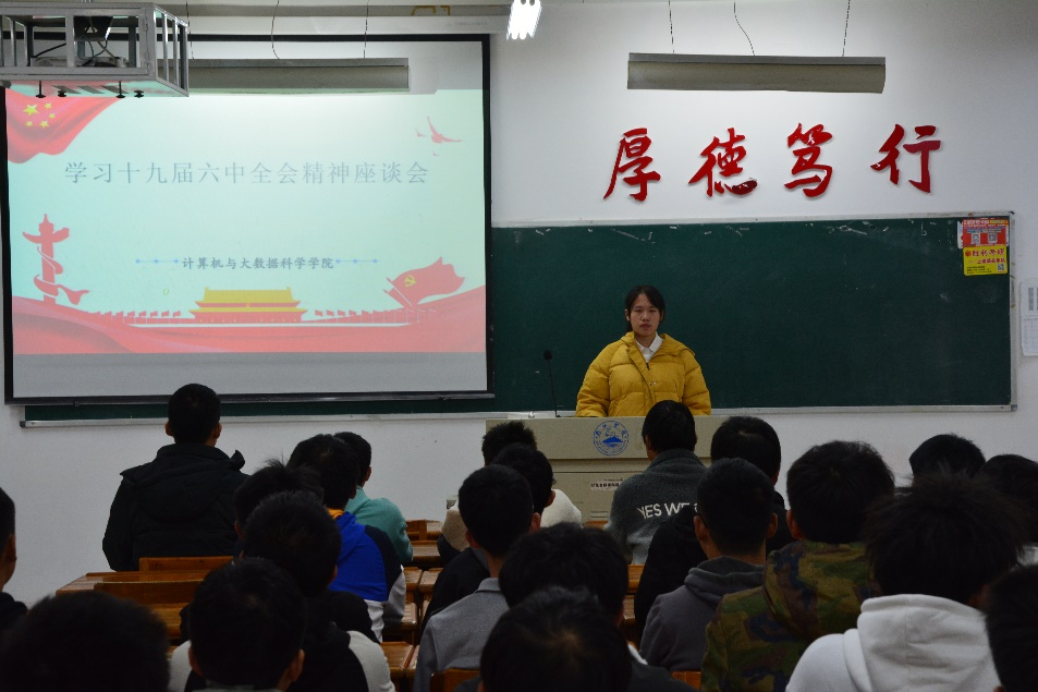 为深入学习贯彻党的十九届六中全会精神,11月23日晚,计算机学院于文友楼515开展“学习党的十九届六中全会精神”读书座谈会。此次会议由计算机学院A2032班孙文芳主持,各班团支书参加。