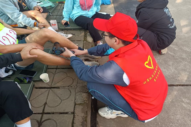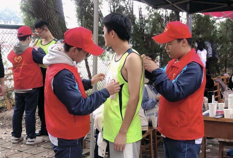 从清晨集合开始,志愿者们就带着蓄势待发的冲劲投入到紧张、忙碌的工作当中。布置场地,清洁垃圾,为比赛做好充足的准备。赛前陪同运动员热身、检录,为运动员保管衣物;赛时便一起为运动健儿加油呐喊,时刻关注赛场情况;赛后搀扶运动员去休整,准备好温热的开水,细致地完成后勤工作。志愿者们在大本营各自默默忙碌着,与运动员们一样,亦是一道靓丽的志愿风景线。