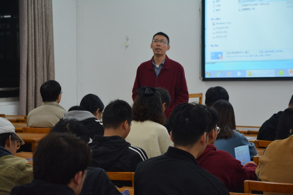 宣讲会开始,杨老师结合当今中国的发展就当下的就业形式进行了分析,向同学们提出期望,要树立正确的就业观,抓住利用好学校平台,找准未来的方向行业,同时确定好自己的工作预期目标。