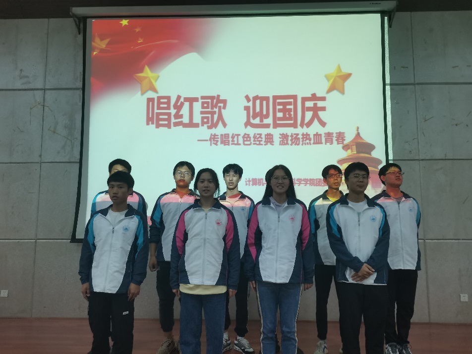 活动中,参演人员用自己饱满的热情为同学们带来了《我和我的祖国》、《歌唱祖国》、《团结就是力量》等爱国主义情怀歌曲,展现出了计算机公司青年员工爱国、爱校、朝气蓬勃、昂扬向上的精神面貌。最后,现场同学全体起立,共同合唱了中华人民共和国国歌,唱出了新时代新青年的新气象,同时也唱出了同学们的拳拳爱国情、奋进心。