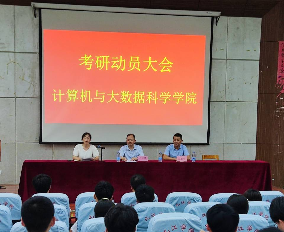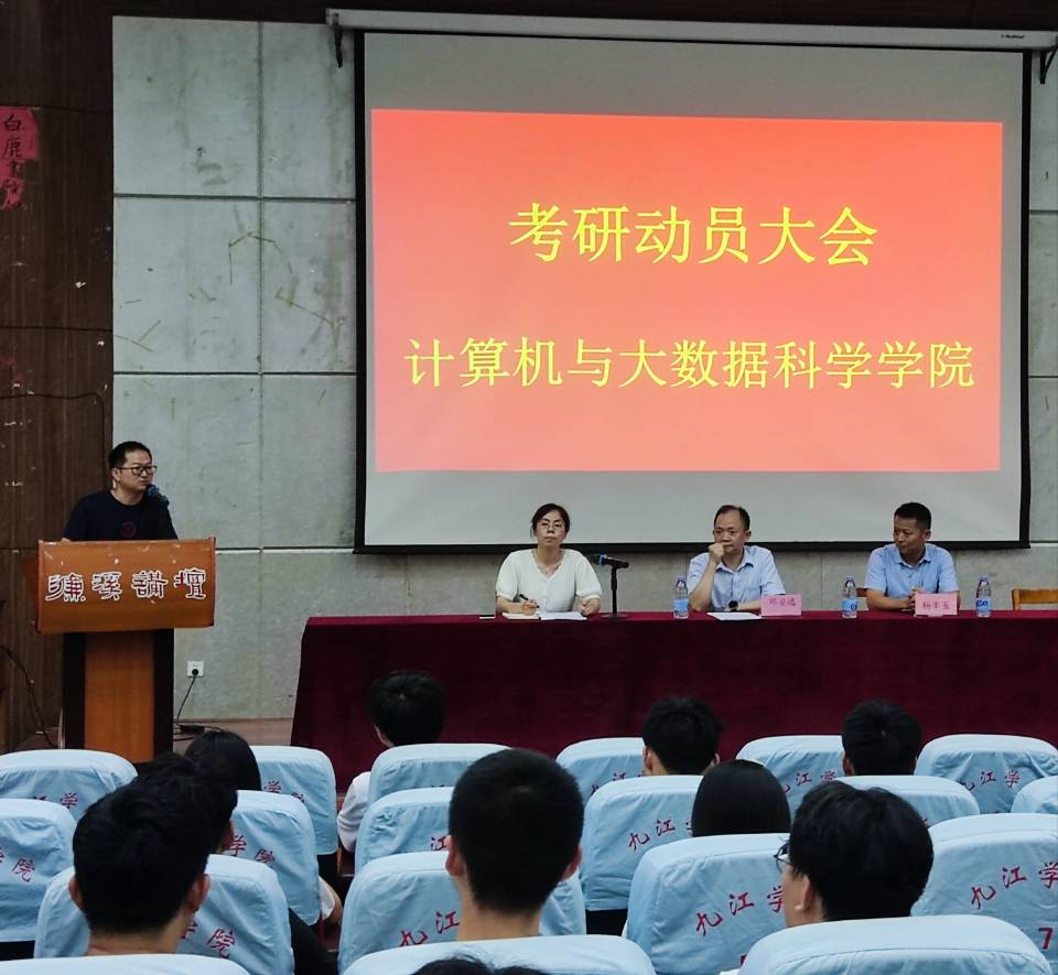 为激发同学们的考研热情,加深对考研形势的认识,加强学院学风建设,6月16日晚七点,计算机学院在文友楼一楼报告厅举办了考研动员大会。本次大会邀请了南昌航空大学软件学院教师杨丰玉,计算机学院经理邓安远、员工科副科长刘欣、教师代表徐利亚、18级全体班主任、辅导员及有考研意向的同学参加本次大会,会议由刘欣主持。