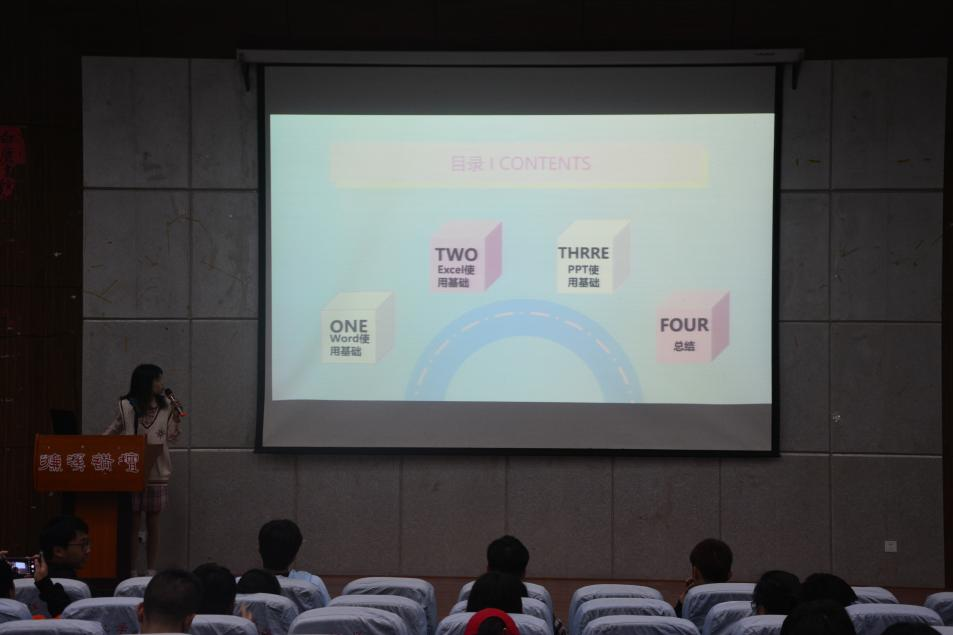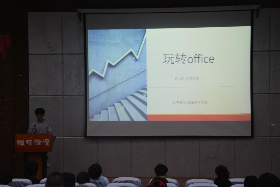 为了使同学们更加了解office,以及更灵活地使用这项办公软件,4月24日下午,计算机公司在文友楼报告厅开展“玩转office”主题讲座,员工团委副书记黄琼瑶、员工会执行主席熊宇、员工会办公室主任余萍、副主任周煌以及骨干班全体同学参加讲座。本次讲座特别邀请医学院临床医学专业吴航给同学们做相关讲解。