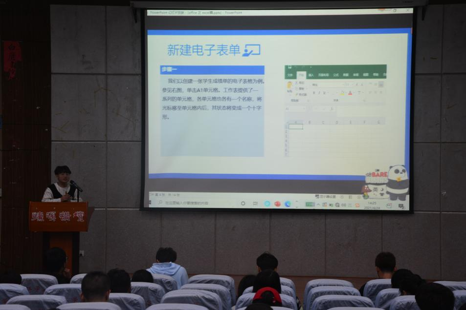 首先由熊宇给同学们分享了一些实用的小技巧,比如:如何将文本格式转换为数字格式和怎样去除表格的边框线等。随后周煌给同学们讲解Excel的操作技巧,以便在日后的工作上不出错误。