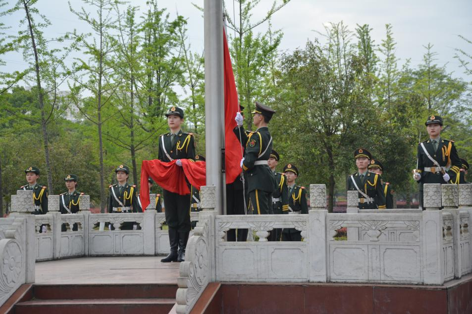 4月19日清晨,计算机学院在西大门举行“强信念,跟党走”升旗观礼仪式。计算机学院全体大一同学参加仪式。