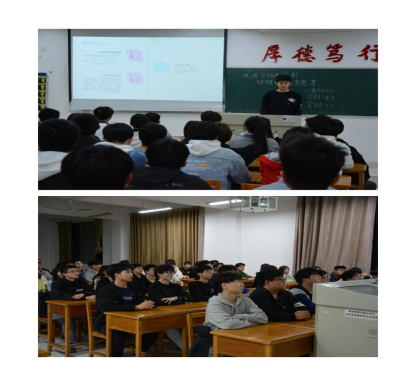 在退伍员工宣讲活动中,杨帅鹏讲述了自己在军旅的所见所感,生动地讲述了他有幸前往缅甸驻防边境的经历,同时通过退役前的照片帮助大家更直观的感受现实的军人生活,陈思源则以大事年表的方式,通过逻辑导图帮助大家明白当兵所要做的具体事务,卢沄松则仔细阐述了他当兵的经历和感想,并鼓励同学们积极参与到征兵工作中去。
