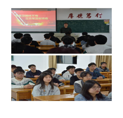 为贯彻落实全国、省、市征兵工作会议精神,进一步宣传国家征兵政策,鼓励青年老员工携笔从戎、投身军营,计算机学院近期开展“强军报国,有你有我”主题团日活动、征兵宣传主题班会、退伍学长宣讲等系列活动。