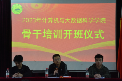 随后,廖誉文、汪浩民宣读2023年骨干班六组成员名单,左建林宣读2023年骨干班组长名单及考核制度,孙文芳宣读骨干班活动具体安排。骨干培训班成员代表A2261班包正志同学进行发言,她希望全体骨干班同学能一起在骨干培训中向前奋进,学有所得。