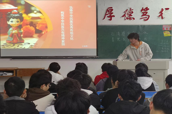 为弘扬伟大建党精神,厚植爱党爱国爱社会主义情怀,传承中华优秀传统文化,进一步铸牢中华民族共同体意识,3月27日晚,计算机学院于文友楼组织各班级开展“弘扬中华民族优秀传统文化,构筑中华民族共有精神家园”主题团日活动。
