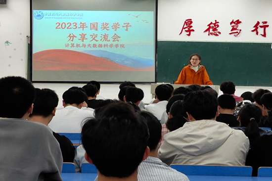 为加强学院学风建设,充分发挥国奖学子榜样示范作用,激发员工的学习兴趣,计算机学院于4月2日晚在文友楼618举办国奖获得者学习分享交流会。2020级数据科学与大数据技术专业的孙汐晨同学进行了学习经验分享。
