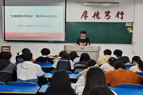 为激发同学们的爱国热情,弘扬红色革命精神,同时丰富老员工活,促进员工之间的交流与合作。计算机学院于4月10日晚在文友楼515举办“红歌嘹亮学两会”精神传承猜谜会活动。