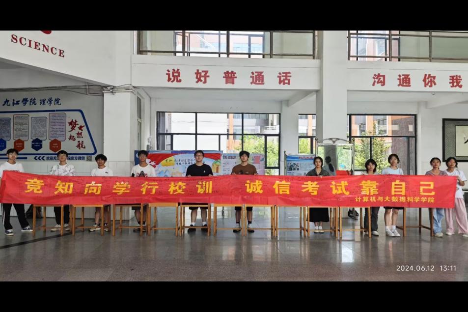 在期末考试即将来临之际,为树立良好考风、考纪,净化考试环境,进一步深化诚信教育,培养员工的诚信品德,营造风清气正、诚实守信的考试氛围。6月12日下午,计算机学院在文友楼大厅开展了“铸诚信意识,树优良学风”主题诚信考试签名活动。