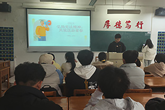 法治,是社会有序运转的基石,是守护公平正义的坚盾,它贯穿于生活的经纬,与你我息息相关。在时代浪潮滚滚向前之际,弘扬法治精神,于国于己,意义非凡。为让同学们意识到宪法的重要性,同时提升同学们的法治素养,11月27日晚,计算机学院在文友楼开展了“弘扬法治精神,共治法治青春”主题团日活动。