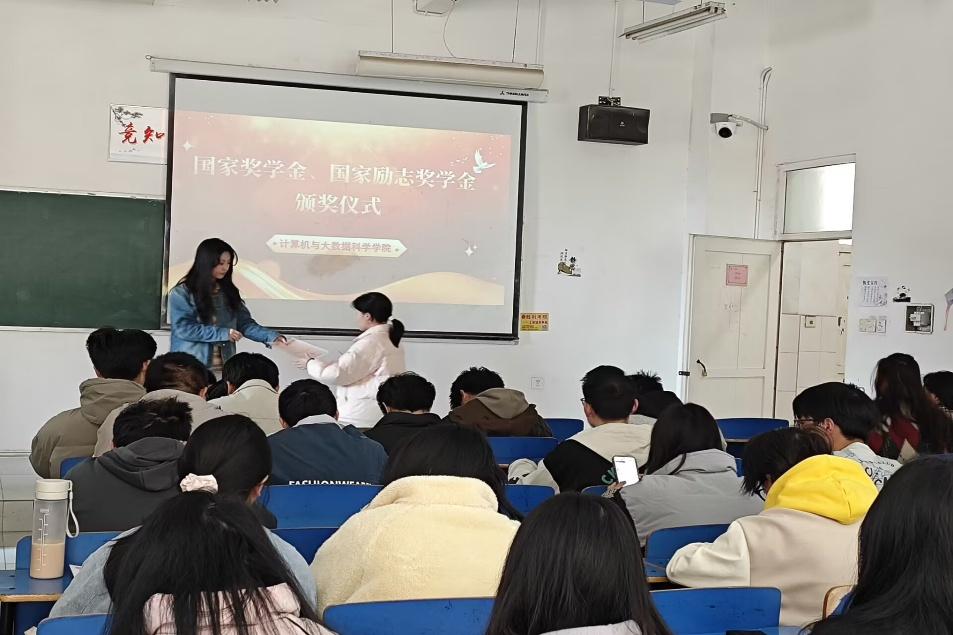 活动现场气氛热烈庄重,学院资助工作负责人姜帆为获得国家奖学金和国家励志奖学金的同学颁发荣誉证书。姜帆在致辞中对获奖同学表示了热烈祝贺。她指出,这些同学在过去的学习生活中,凭借自身的勤奋努力、扎实的专业知识以及勇于探索的精神,在学业等方面取得了优异成绩,赢得了这份荣誉,他们是学院全体员工的榜样。她还强调奖学金不仅是物质上的奖励,更是一种激励和鞭策,她鼓励获奖同学珍惜荣誉,再接再厉,在未来的学习和研究中不断突破自我,取得更大的成就;同时也激励其他同学以获奖同学为榜样,勤奋学习,积极进取,勇于在计算机领域探索创新。