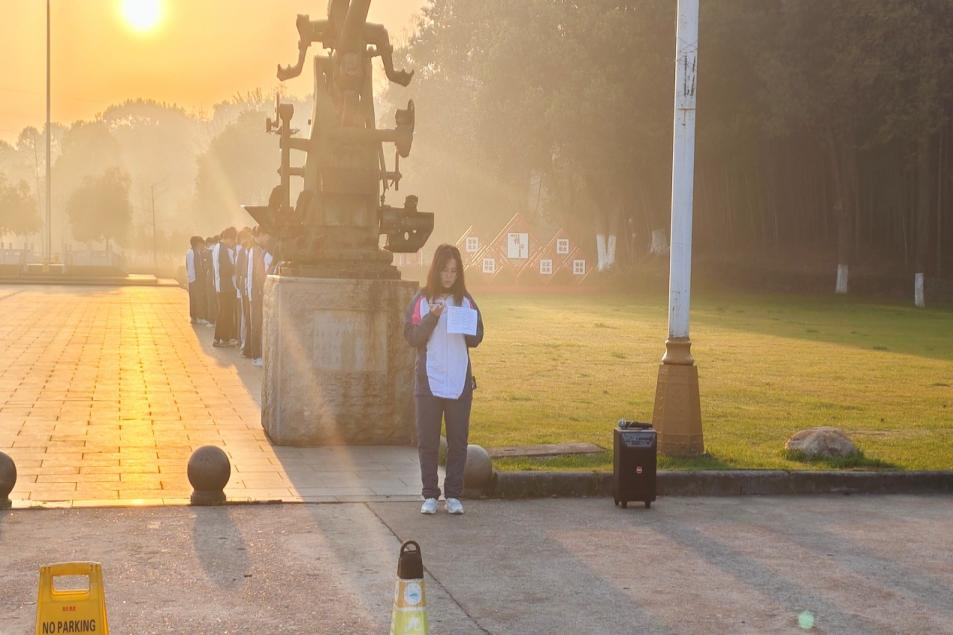 晨曦微露,计算机学院的同学们整装待发,以昂扬的精神面貌迎接这一庄严而神圣的时刻。6:25之前,各班级已在指定地点集合完毕,队列整齐划一,秩序井然有序。尽管清晨的凉风拂面,但同学们的热情却如火如荼,大家都以最诚挚的心情期待着升旗仪式的到来。