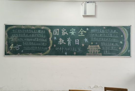 教室内,一块块黑板报映入眼帘,它们以图文并茂的形式,生动地展示了国家安全的各个方面。其中,一块黑板报尤为引人注目,它以“国家安全教育”为主题,用粉笔勾勒出了一幅幅生动的画面。黑板报的左侧,是一幅描绘国家安全概念的图画。画中,一个盾牌象征着国家安全,盾牌周围环绕着象征军事安全、经济安全、文化安全、社会安全等元素的图案。右侧则是一段关于国家安全重要性的说明文字,强调国家安全是国家发展的基石,是人民幸福的保障。