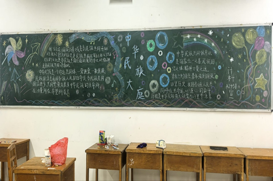 在黑板报创作过程中,同学们用色彩缤纷的纸飞机、彩虹、气球等意向,代表各具特色却又密不可分的五十六个民族,汇聚成乐曲的音符则表达了民族团结的核心思想,打造出一幅主题鲜明、内容丰富的视觉画卷。文本中“以中华民族是一个命运共同体”为指导思想,深入挖掘各民族共同开拓祖国疆土、共同书写悠久历史、共同创造灿烂文化的深厚内涵。各黑板报作品彰显了新时代青年对民族团结的深刻理解,充分展现了同学们的创作能力和家国情怀。