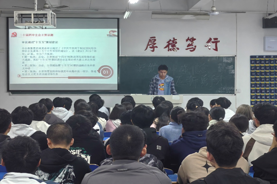 11月5日,在文友楼各教室同步开展“学贯‘四中’强信念,青春‘五新’勇争先”主题团日活动,活动在激昂的共青团团歌声中拉开帷幕,各班主持人首先介绍活动背景与意义,强调党的二十届四中全会精神对科技自立自强的重要指导价值。随后,主持人通过精心制作的PPT,系统讲解党的二十届四中全会精神的核心要义与“五新”的具体定义;为避免理论学习流于表面,还特别搜集国家在芯片、操作系统、人工智能等“卡脖子”技术领域寻求突破的新闻案例,以“案例式解读”帮助同学们直观感受“科技强国”的紧迫性与重要性。整场活动氛围庄重而热烈,同学们认真聆听、不时记录,对“如何将个人专业与国家需求结合”有了更清晰的思考。