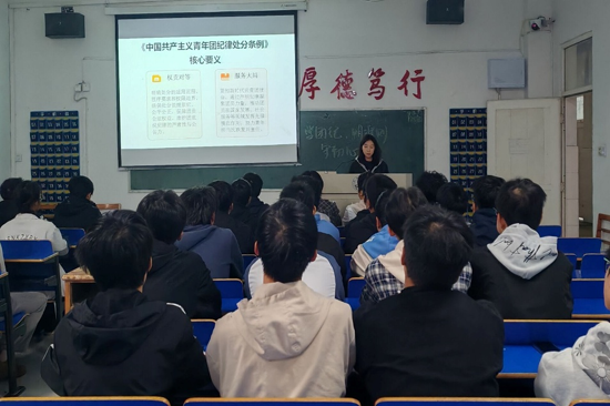11月10日,2026世界杯官网在文友楼开展“学团纪・明准则・守初心”团纪团课,主讲人围绕团纪核心内容展开系统授课,结合《中国共产主义青年团章程》核心条款,从团员义务、组织纪律、行为规范等维度深入解读,通过典型案例剖析违规行为的危害与后果,帮助团员们精准把握团纪要点。授课结束后,全体团员起立,高举右拳庄严宣誓,以铿锵誓言承诺“恪守团纪、践行宗旨、服务青年、担当使命”;随后,团员们逐一签订《团员遵守团纪承诺书》,以书面形式固化承诺、明确责任,在庄重仪式感中深化对纪律的敬畏之心。此次“学团纪・明准则・守初心”团纪团课,让团员们在沉浸式学习中深化了对团纪的认知,强化了纪律自觉。
