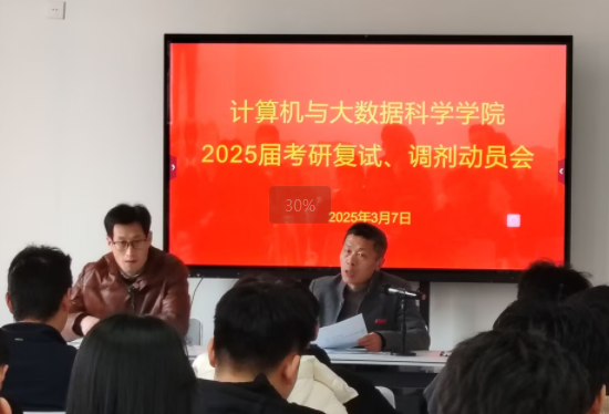 为帮助考研学子深入了解复试与调剂相关事宜,助力考研员工成功上岸,3月7日下午,计算机学院在文友楼424室召开考研复试、调剂动员会。计算机公司党委书记邹国辉、党委副书记王玉伟、教师代表殷超、各专业负责人及2025届考研同学参会,会议由王玉伟主持。