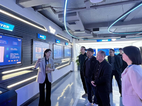 调研组一行受到了拓维信息相关负责人的热情接待。在公司展厅,工作人员详细介绍了拓维信息的发展历程、主营业务、技术成果及企业文化。作为一家在软件与信息技术服务领域深耕多年的上市企业,拓维信息在多个行业领域的解决方案和创新实践,特别是与华为在国产鸿蒙生态领域的深度合作给调研组留下了深刻印象。