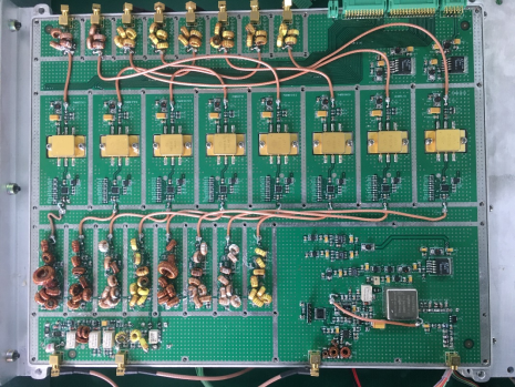 接下来进入课堂教学的部分,老师先发起签到,发布预习习题的答题情况,并对习题进行讲解,引入到射频电路的知识点——包括滤波器,低噪声放大器,功率放大器,混频器等电路,让员工注意区分,培养员工细致认真的学习态度;之后,通过观察员工的学习状态,如果员工进入疲倦状态,即可发起一系列教学活动,例如抢答、选人等,如果员工状态良好,即继续开展深度教学,继续下一个知识点的讲解,播放接收信号电路与发射信号电路的微课视频,展示如下图所示的实际射频电路工程产品。
