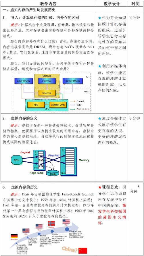 3.思政目标:成为国产操作系统内存技术人才;通过分析虚拟内存产生的背景和动机,厚植爱国主义情怀;通过讲授虚拟内存缺页与处理流程,弘扬大国工匠精神;